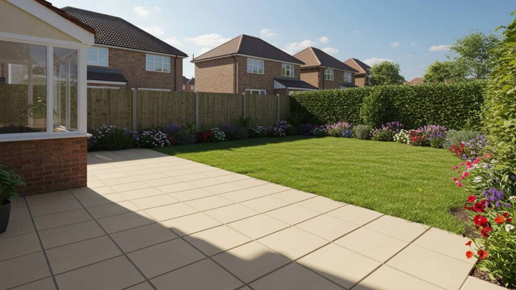 Concrete paving is ideal for large terraces or pathways, providing a strong, practical surface while maintaining a clean and contemporary appearance.